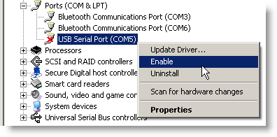 - Right click the port in your computer's Ports list (it will be labeled "Communications Port" with a serial connection, or "USB Serial Port" with a USB connection)