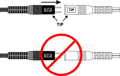 The picture below shows a common mistake that should be avoided with universal adapters. Many of these allow you to reverse the terminals on the 9 V battery extension. Although it cannot hurt the BASIC Stamp, Board of Education, or HomeWork Board, it can destroy a Parallax Standard Servo connected to Vin in a matter of seconds. The only system that can protect the servo from this mistake is a Board of Education that has a jumper between the servo ports, with that jumper set to Vdd.