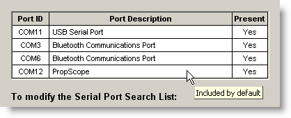 The list of ports is shown in the order in which they will be scanned during BASIC Stamp identification and/or download processes. The ports to be scanned, and the order in which they are scanned, can be set through this interface, described below.