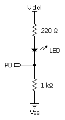 The example programs illustrate this second fact with a two-tone LED blinker, using the circuit below: