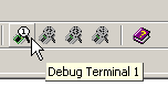 Tip: Sometimes the Debug Terminal gets hidden behind the BASIC Stamp Editor window. You can bring it back to the front by using the Run menu as shown, the Debug Terminal 1 shortcut button on the toolbar, or the F12 key on your keyboard.
