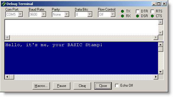 DEBUG "Hello, it's me, your BASIC Stamp!"