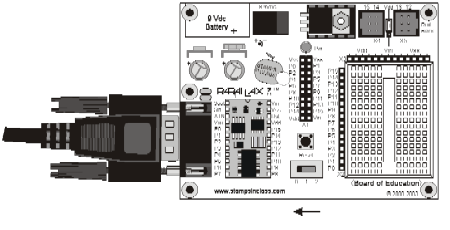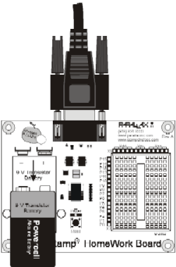 It’s important to disconnect the power from your BASIC Stamp and Board of Education (or HomeWork Board) whenever you leave it unattended or when you build or modify circuits on its breadboard. First, your batteries will last longer if the system is not drawing power when you’re not using it. Second, soon you will build circuits on the Board of Education or HomeWork Board prototyping area.
