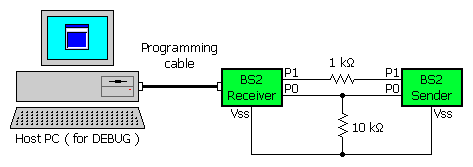 See the example program for a flow control example using two BS2s. In the demo program example, without flow control, the sender would transmit the whole word "HELLO!" in about 1.5 ms. The receiver would catch the first byte at most; by the time it got back from the first 1-second PAUSE, the rest of the data would be long gone. With flow control, communication is flawless since the sender waits for the receiver to catch up.